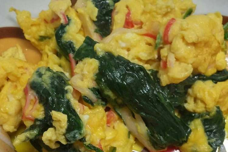 ほうれん草 カニカマの卵炒め レシピ 作り方 By こうママ クックパッド 簡単おいしいみんなのレシピが352万品